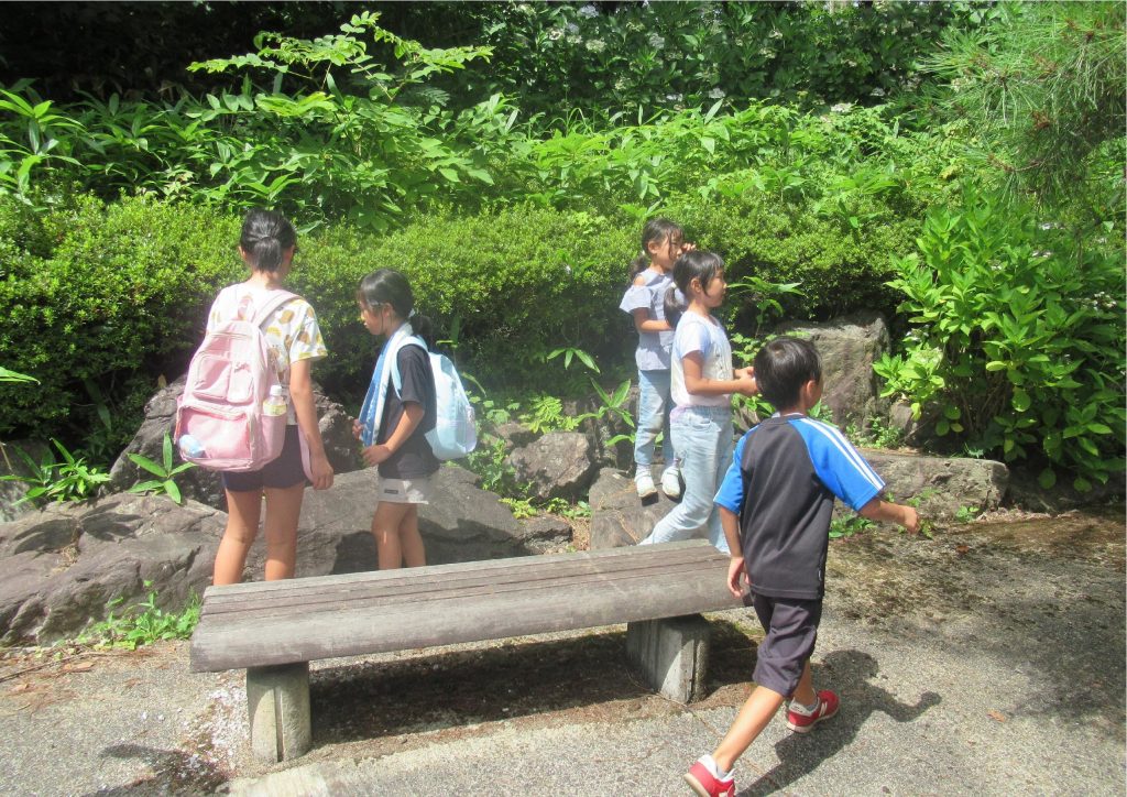 カプセルトイは、昼食後のお楽しみということで「宝探し」に使用いたしました。草の影、石の影、枝の上などボランティアの学生さんたちが隠してくれました。キラキラ光るようにアルミ箔で包みました。