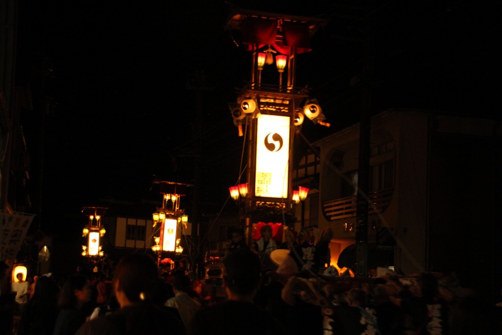 能登のキリコ祭りの先陣 キリコも神輿も大暴れ