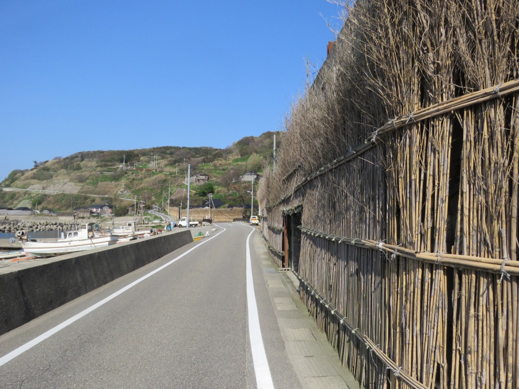 輪島市では西保地区、皆月地区の一部で間垣が伝承されている。間垣というのは、高さ約5mの苦竹や真竹を割ったものを隙間なく並べた垣根のことで、冬は日本海から吹きつける季節風から家屋を守り、夏は暑い西日をさえぎるなどの効果があります。毎年11月上旬頃に間垣の補修が行われます。