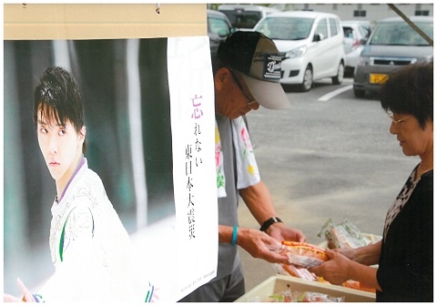 写真は、9月23日真備公民館岡田分館で、被災者の方々に岡山木村屋の菓子パンを無償配布している模様です。