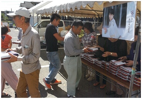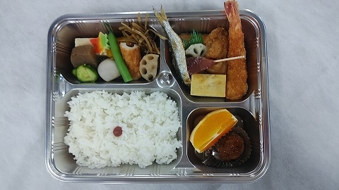 2018年10月16日 写真は、9月28日真備公民館岡田分館で被災者の方々に、小田郡旅館料理飲食喫茶綜合組合様が調理した幕の内弁当を無償配給している模様と、配給された幕の内弁当です。 FacebookXCopy