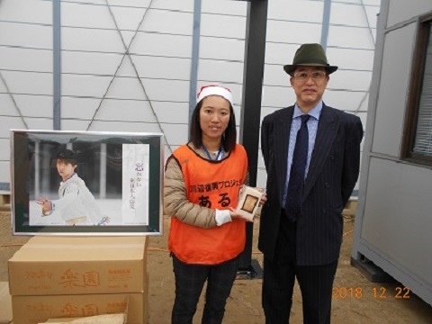 次は槙原聡美代表(左)と弊機構の田中理事長です。 槙原代表が手にしているのが、越後こがねもちです。