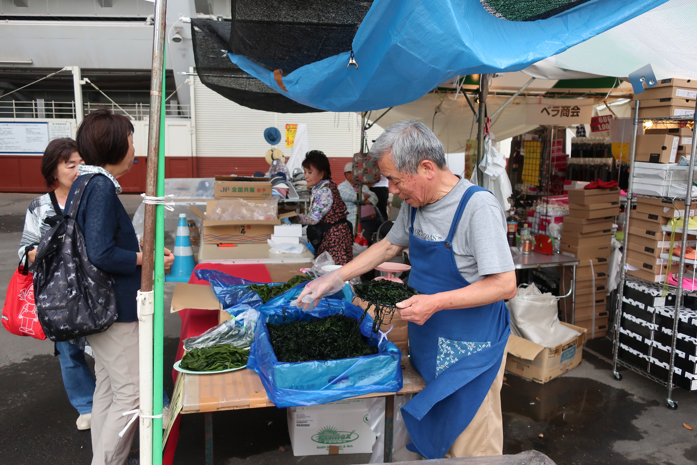 宮古市重茂は、本州最東端に位置する小半島で、沖合は親潮、黒潮の暖寒流が交差し激しい潮流や海水の移動が多く、その荒波で育った重茂産ワカメは肉厚で、やわらかく、歯ごたえがちょうどよいとの評判で、人々が長い行列に並んでいました。