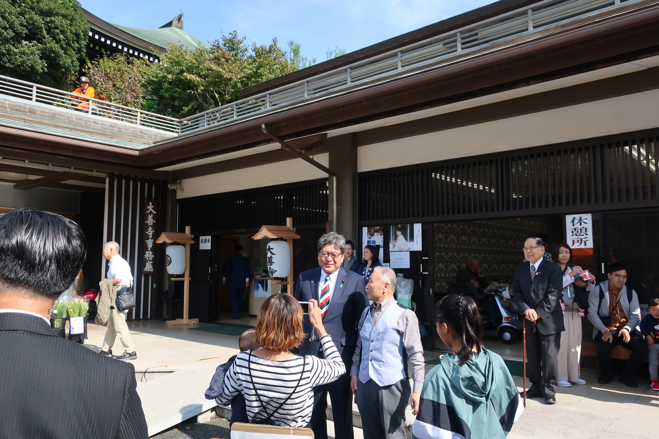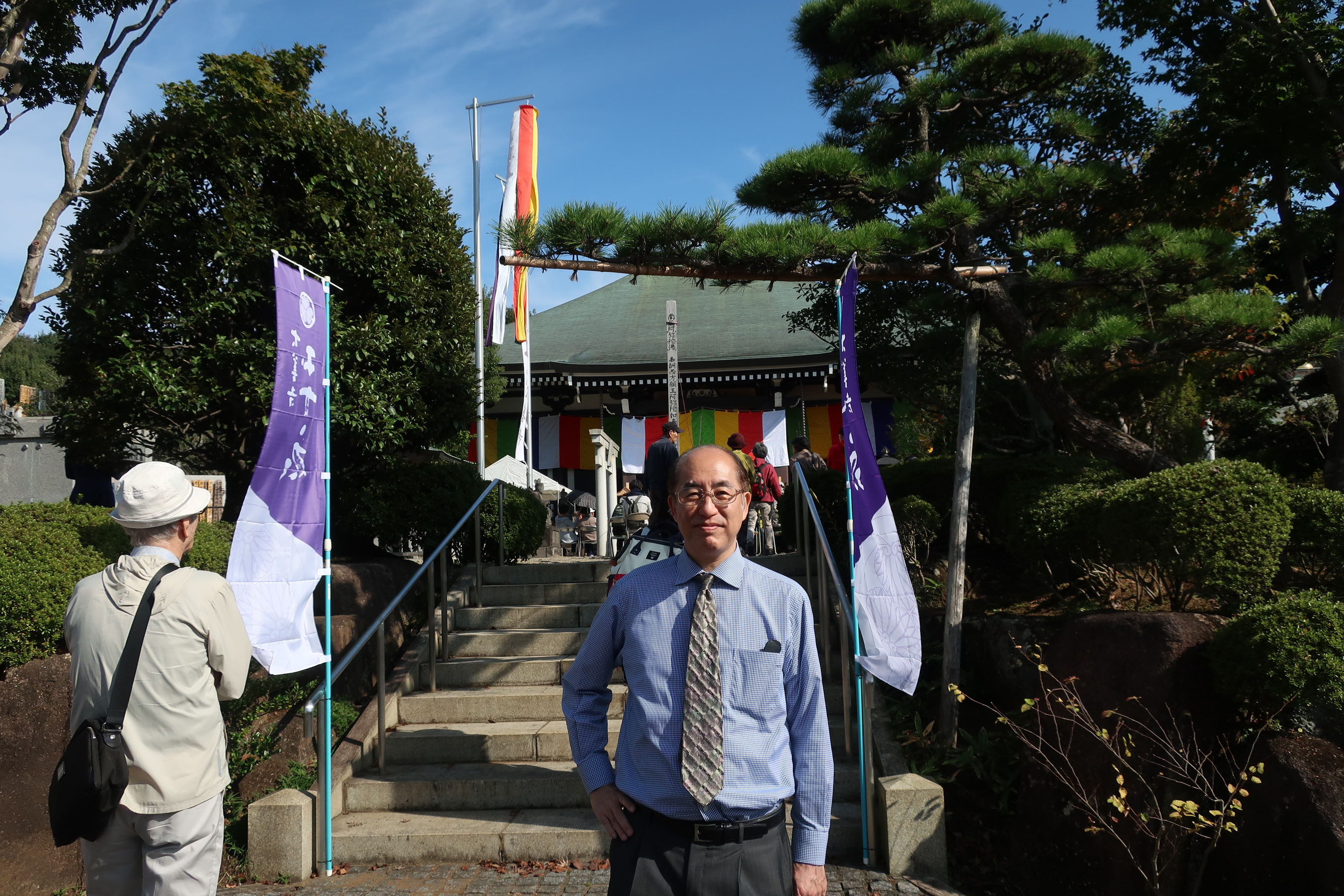 本堂前で田中潤理事長