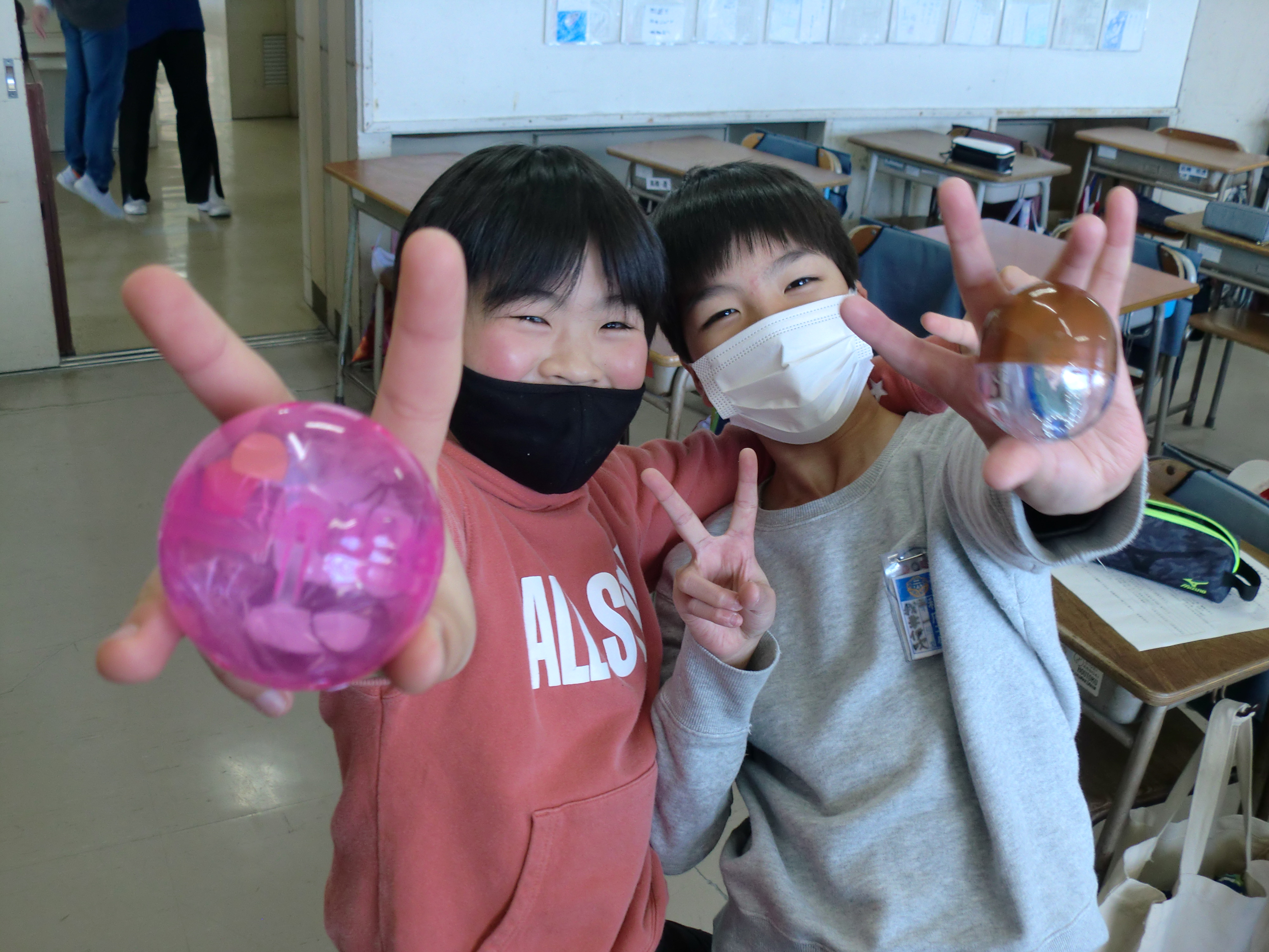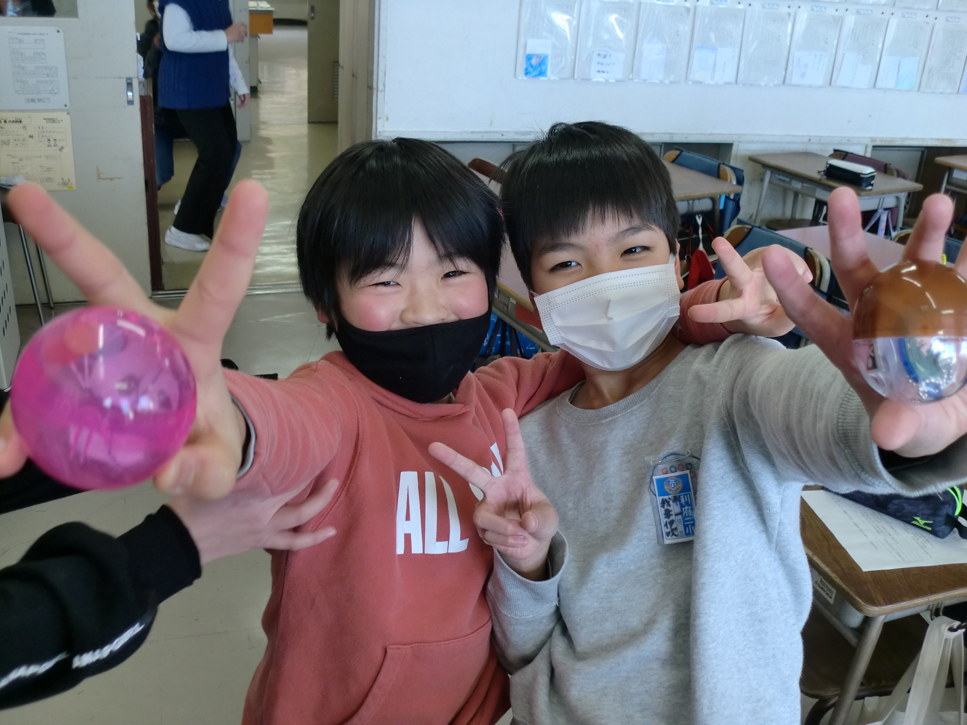 このたび、宮城県宮城郡利府町立利府第二小学校様から写真が届きました。 「子供たちにキャラクターグッズを配布したところ大喜びでした」とのメッセージが添えられていました。