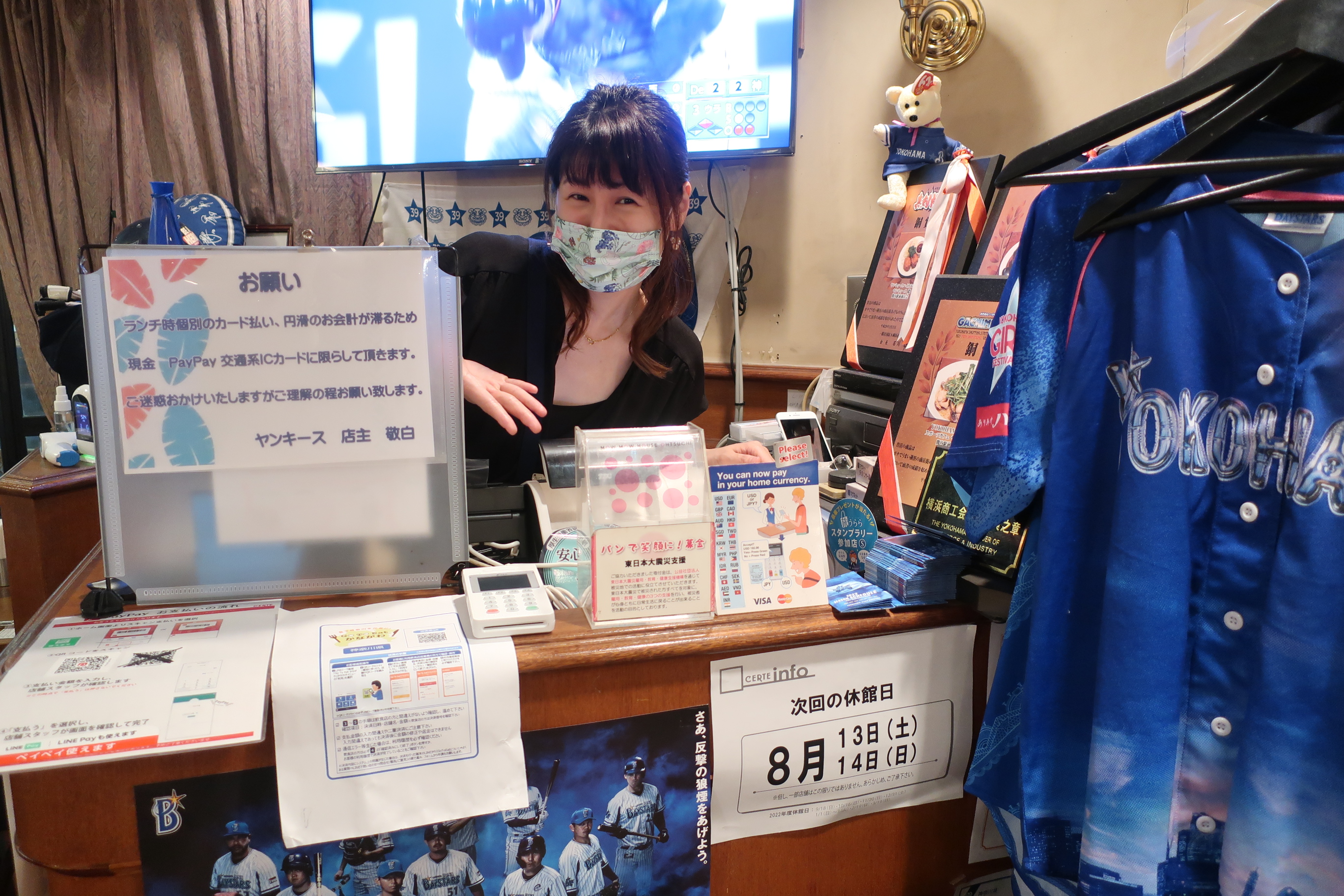 1979年創業のヤンキ-ス様は、関内駅前セルテビル6階の好立地にあり、店内の大型スクリ-ンではプロ野球開催中は地元球団 横浜ベイスターズの試合をフルオンエアー、熱狂の中での新鮮な食材のお料理と多彩なお酒 ドリンクを楽しみながらの観戦。シーズンオフは各種タイムリーなスポーツを放映しスポーツライブ感覚の古き良き横浜を感じさせるスポーツライブカフェです。