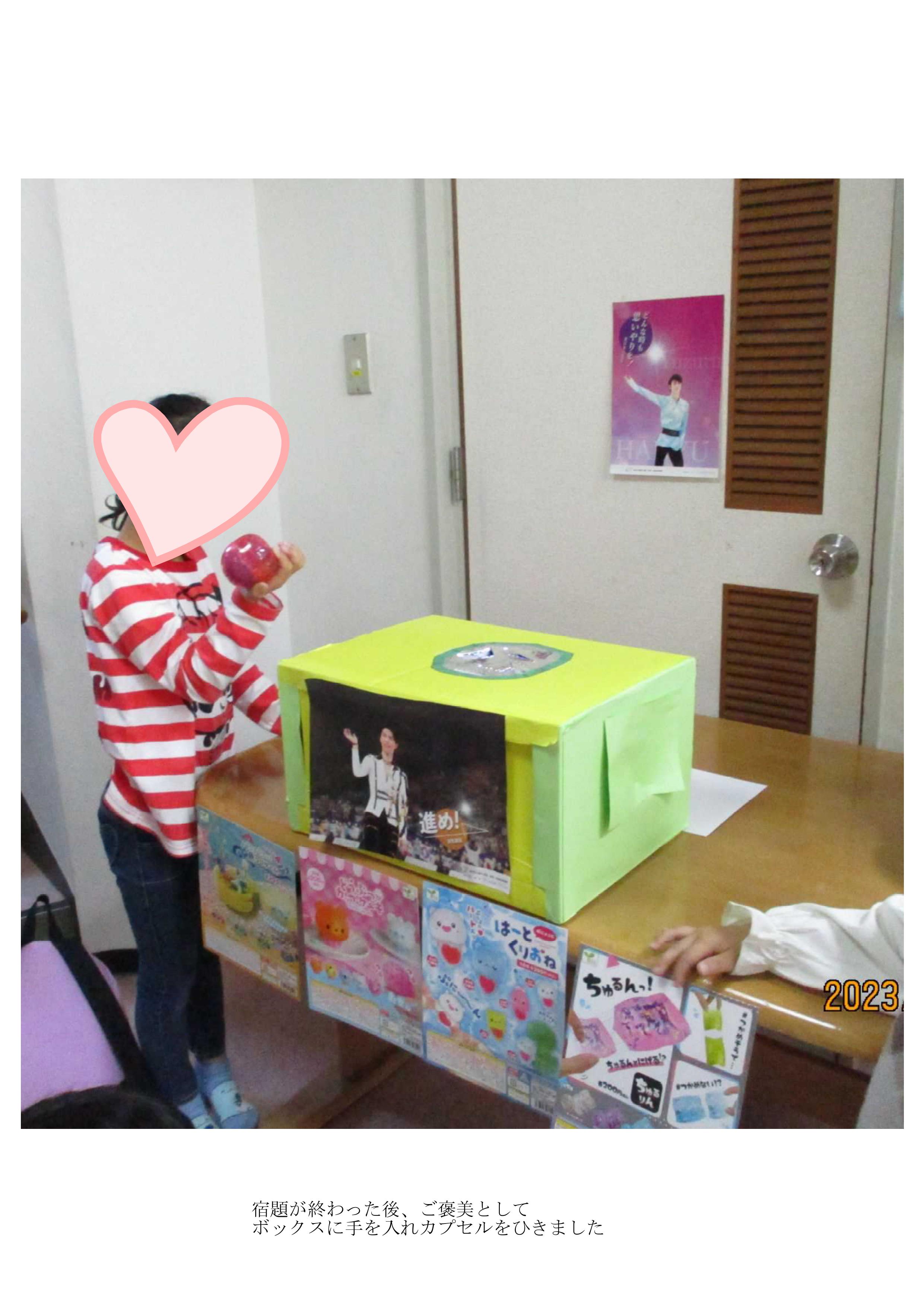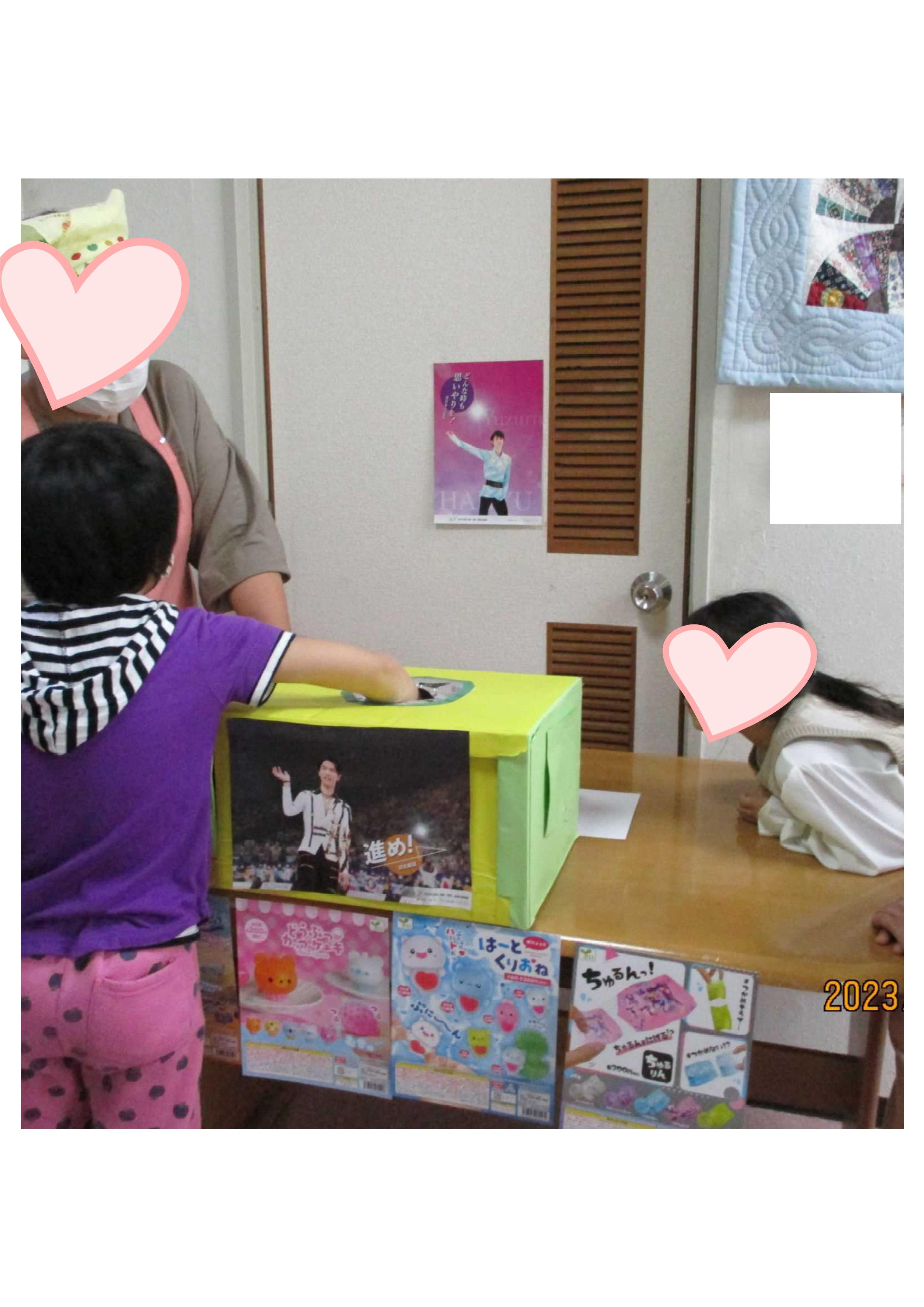 「6月3日(土)児童センターで行なった『勉強&おみやげランチ』で配布することができました。勉強をしたあと、頑張ったこども達にご褒美としてわたしました。何が当たるかドキドキしながらボックスに手を入れて、大変喜んで持ち帰っていました。ありがとうございました。」