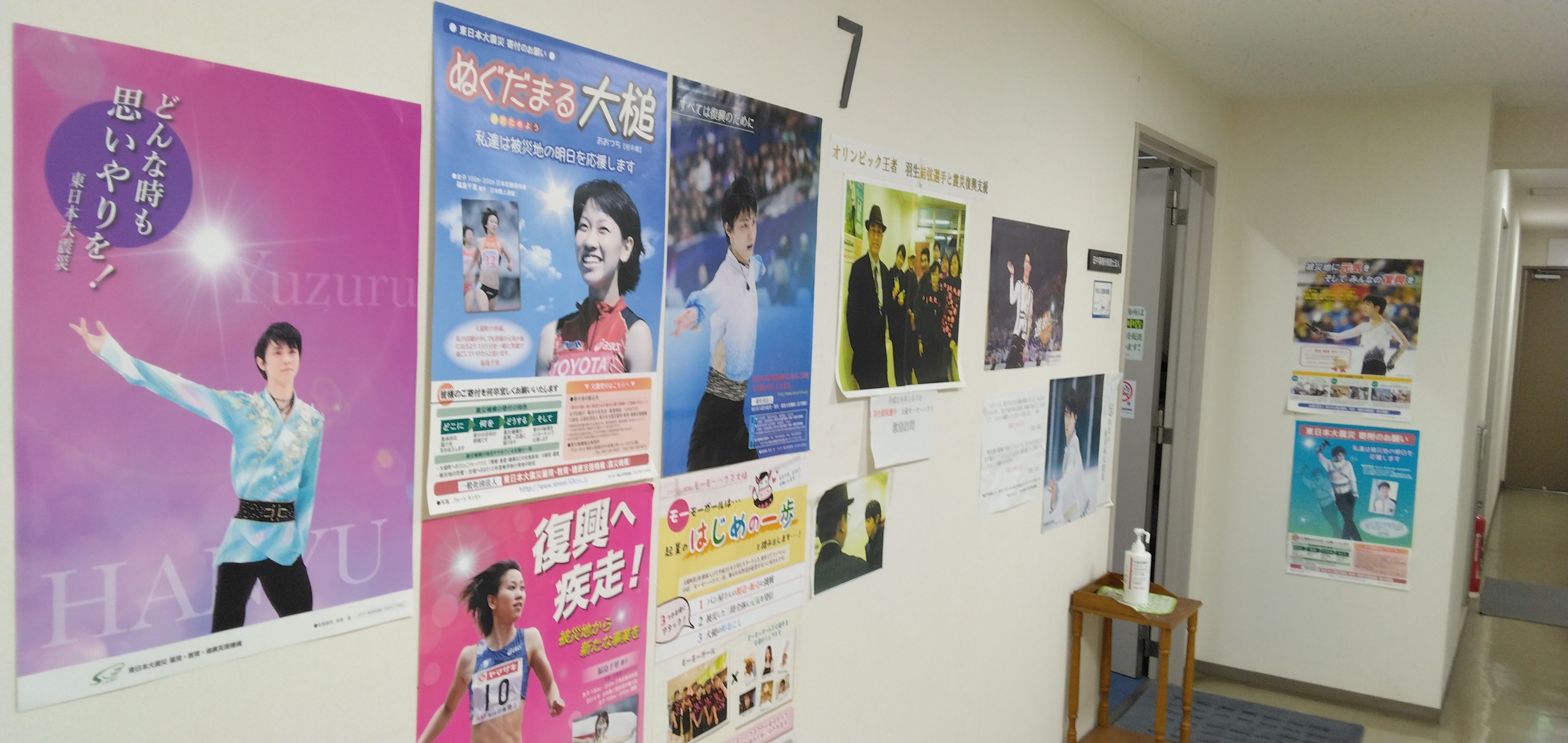 【横浜事務所入り口】羽生結弦さんの雄姿が迎えてくれます